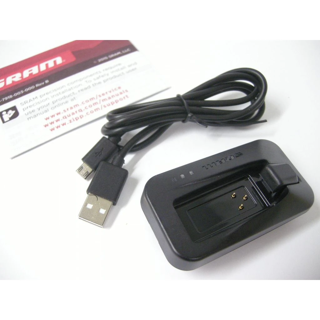 Öffne ohne Werkzeug den Verschluss, schiebe die Batterie hoch und aus dem Schaltwerk bzw. Umwerfer und stecke sie in das USBLadegerät. Du kannst das Ladegerät mit jeder USB-fähigen Stromquelle verbinden oder mit einem A/C USB-Adapter an das Stromnetz anschließen.